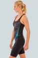 De BECO dames badpak TEAM in zwart met grijze en lichtblauwe accenten is comfortabel om te dragen en is chloorbestendig. Het badpak is een sportbadpak met lange broekspijpen tot net boven de knieën. De stof is comfortabel en duurzaam en het opvallende ontwerp geeft het badpak alle eigenschappen die zwemmers zich maar kunnen wensen.