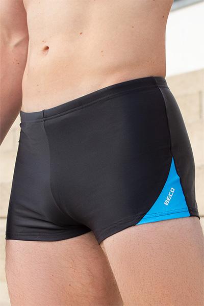 De BECO heren zwemboxer TEAM in zwart met lichtblauwe accenten is comfortabel om te dragen en is chloorbestendig. Een zwemboxer is een sportzwembroek met korte broekspijpen. De stof is comfortabel en duurzaam en het opvallende ontwerp geeft de zwembroek alle eigenschappen die zwemmers zich maar kunnen wensen.
