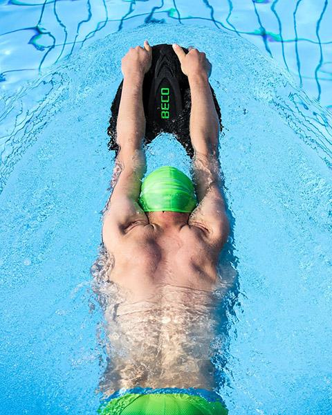 Het BECO zwemplankje Pro X2 is gemaakt van EPS-schuim en biedt een hoog drijfvermogen aan de handen/armen. Het zwemplankje is licht van gewicht, het materiaal is stijf/star en niet buigzaam. Doordat je het zwemplankje met de handen vasthoudt, lig je als zwemmer horizontaal gestroomlijnd in het water, dat is de ideale positie in het water voor een goede zwemtraining.