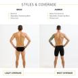 De pijpen van de jammer zwembroek lopen tot kort boven de knieën en bieden een goede compressie, pasvorm, comfort en bewegingsvrijheid. De jammer is uitgevoerd met een verstelbaar verterstrik koord aan de binnenkant van de jammer en een privacy liner (voering). De voering aan de voorkant verhoogt de duurzaamheid en vermindert de eventuele kans transparantie van de stof. De stof is bestand tegen chloor en UV-stralen.
