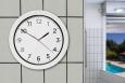 De IHM wandklok 33 cm is een wandklok van normaal formaat en heeft een witte ABS-kunststof behuizing en een waterdichte rand en is IP 54 gecertificeerd. Dit betekent dat de klok waterdicht is en bestand is tegen sterke waterstralen. Dit maakt deze klok geschikt voor gebruik als zwembadklok. Hierdoor kan de klok worden opgehangen op plaatsen met een hoge luchtvochtigheid zoals bij zwembaden en kleedkamers. Daarnaast is de ABS-kunststof behuizing UV-bestendig, hierdoor kan deze klok buiten worden gebruikt.