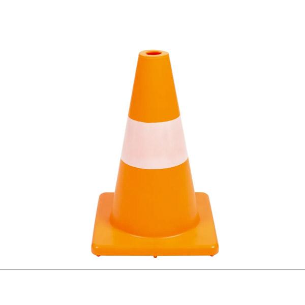 Megaform oranje pilon gemaakt van buigzaam pe-materiaal. De pilon heeft een fel oranje kleur en wit gekleurde band en is hierdoor goed zichtbaar. De bovenkant van deze pilon is open, waardoor de pilonnen in het water gebruikt kunnen worden en ze naar de bodem zinken.